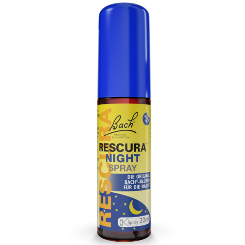 Das Bach RESCURA™ NIGHT Spray enthält die Original Bach®-Blütenmischung bestehend aus den 5 Bachblüten Rock Rose (Gelbes Sonnenröschen), Clematis (Weiße Waldrebe), Impatiens (Drüsentragendes Springkraut), Cherry Plum (Kirschpflaume), Star of Bethlehem (Doldiger Milchstern) kombiniert mit der Bachblüte White Chestnut (Weiße Kastanie).