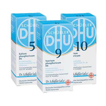 DHU Schüßler-Salze Nr. 5 + 9 + 10 als Tabletten.