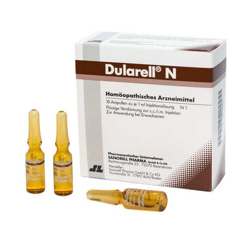 Dularell® N ist ein registriertes homöopathisches Arzneimittel und daher ohne Angabe einer therapeutischen Indikation. Die Anwendungsgebiete leiten sich von den homöopathischen Arzneimittelbildern und Leitsymptomen ab.
