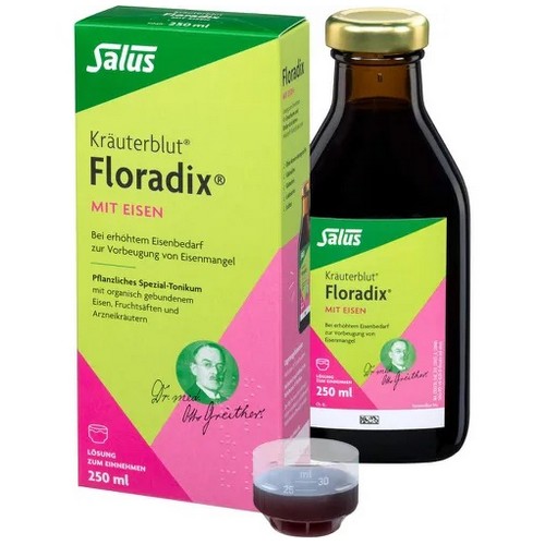Soweit nicht anders verordnet, nehmen Erwachsene und Heranwachsende ab 10 Jahren 3 x 15 ml pro Tag mit dem beiliegenden Messbecher ein. 45 ml Floradix mit Eisen enthält 36,8 mg verwertbares Eisen(II). Die Einnahme erfolgt am besten gekühlt 1/2 Stunde vor den Mahlzeiten. Kinder von 6–10 Jahre: 2 x 15 ml 30 ml Floradix mit Eisen enthält 24,5 mg Eisen(II).