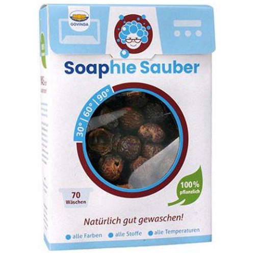 Soaphie Sauber ist die Waschnuss von Govinda und kommt aus dem fernen Indien, wo sie mit ihrer Familie an Bäumen lebt. Schon seit Urzeiten schätzen Menschen sie als Waschmittel für Körper, Haare und Wäsche. In Soaphies Schale steckt ihr Wundermittel – Saponin – welches ganz ähnlich wie Seife funktioniert. Sobald Soaphie mit Wasser in Kontakt kommt, gibt sie ihre natürliche Seife ab. Ein nachwachsender Rohstoff, perfekt für Allergiker und umweltbewusste Menschen! Gut zu deiner Haut, deinen Liebsten und der Erde.