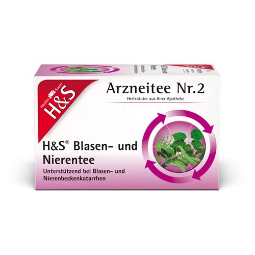 H&S Blasen- und Nierentee. Anwendungsgebiete: Zur Unterstützung bei der Therapie von Blasen- und Nierenbeckenkatarrhen. Zu Risiken und Nebenwirkungen lesen Sie die Packungsbeilage oder fragen Sie Ihren Arzt oder Apotheker. H&S Tee-Gesellschaft mbH & Co. · Heidachstr. 62 · D-88079 Kressbronn/Bodensee.