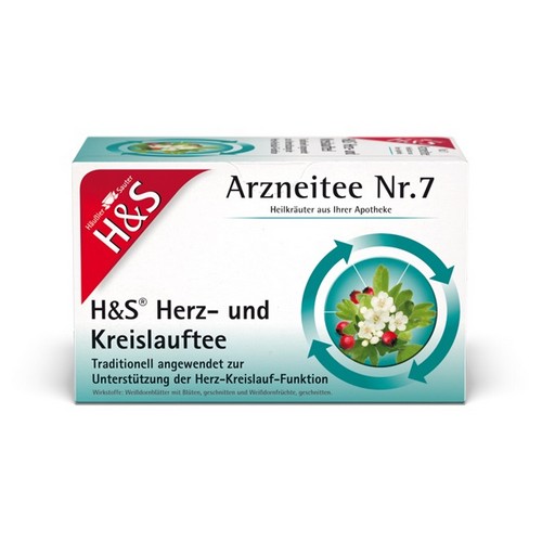 H&S Herz- und Kreislauftee. Anwendungsgebiete: Traditionell angewendet zur Unterstützung der Herz-Kreislauf-Funktion. Dieses Arzneimittel ist ein traditionelles Arzneimittel, das ausschließlich auf Grund langjähriger Anwendung für das Anwendungsgebiet registriert ist. Zu Risiken und Nebenwirkungen lesen Sie die Packungsbeilage oder fragen Sie Ihren Arzt oder Apotheker. H&S Tee-Gesellschaft mbH & Co. · Heidachstr. 62 · D-88079 Kressbronn/Bodensee.