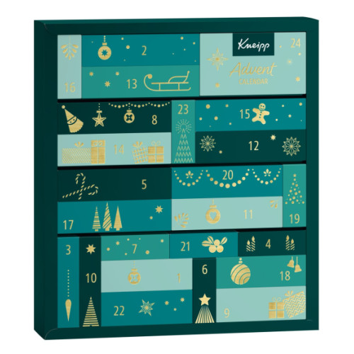Von wohltuender Tiefenentspannung bis hin zur glücklichen Auszeit – der Adventskalender hält je nach Stimmung den passenden Badezusatz für die hektische Vorweihnachtszeit bereit. Sanfte Handpflege mit angenehmen Düften und eine Auswahl an Creme- und Aroma-Pflegeduschen schützen die Haut zuverlässig vor dem Austrocknen. Ergänzt durch hochwertige Haut- und Massageöle sowie pflegende Körperlotion entsteht ein zartes, geschmeidiges Hautgefühl.