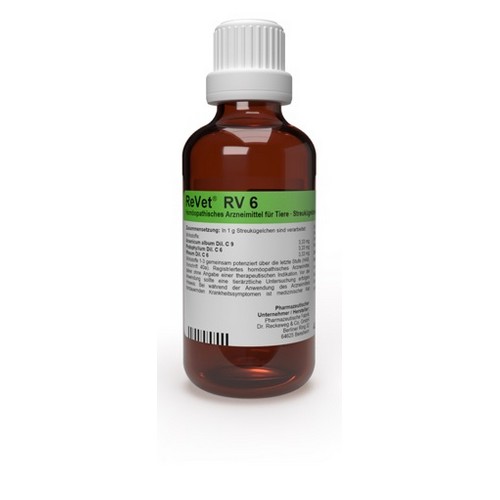 ReVet® RV 6 - oral - (Globuli) wird in etwas Wasser aufgelöst eingegeben. Die Globuli dürfen auch aufgelöst mit etwas Nahrung oder Tränke verabreicht werden. Die Häufigkeit und Dauer der Anwendung richtet sich in erster Linie nach den Grundsätzen der Homöopathie, wonach bei beginnender Besserung seltener dosiert wird und nach Erreichen des Normalzustandes zunächst keine weitere Anwendung erforderlich ist.