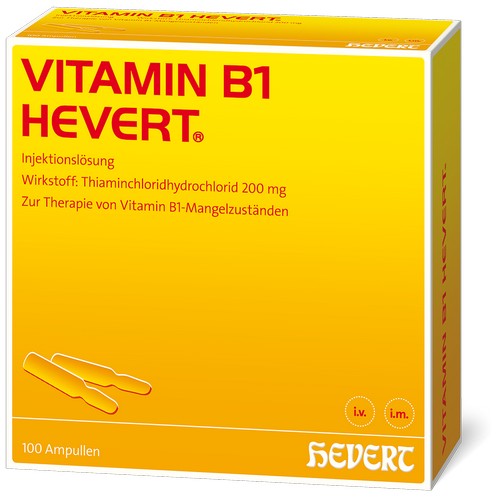 Vitamin B1 Hevert Anwendungsgebiete: Zur Anfangsbehandlung schwerer Formen der Wernicke-Enzephalopathie (eine durch Vitamin B1-Mangel bedingte Erkrankung des Gehirns) und der Beri-Beri (Vitamin B1-Mangelkrankheit). Zu Risiken und Nebenwirkungen lesen Sie die Packungsbeilage und fragen Sie Ihre Ärztin, Ihren Arzt oder in Ihrer Apotheke.