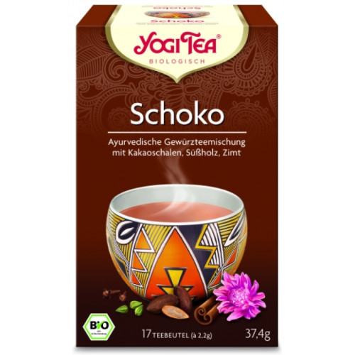 Bestehend aus Chai-Gewürzen und leckeren Kakaoschalen ist unser YOGI TEA Schoko schon seit Jahren Kult. Die Kakaoschalen verströmen ein wundervolles Schokoladen-Aroma und verbinden sich mit den traditionellen Yogi Tee-Gewürzen zu einer geradezu paradiesischen Teemischung. Am besten leicht gesüßt und mit einem Schuss Milch genießen.